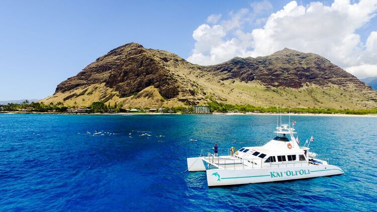오션조이 크루즈 & 스노클링 투어돌고래, 하와이안 거북을 비롯한 아름다운 푸른빛 색채의 향연이 펼쳐지는 순간!