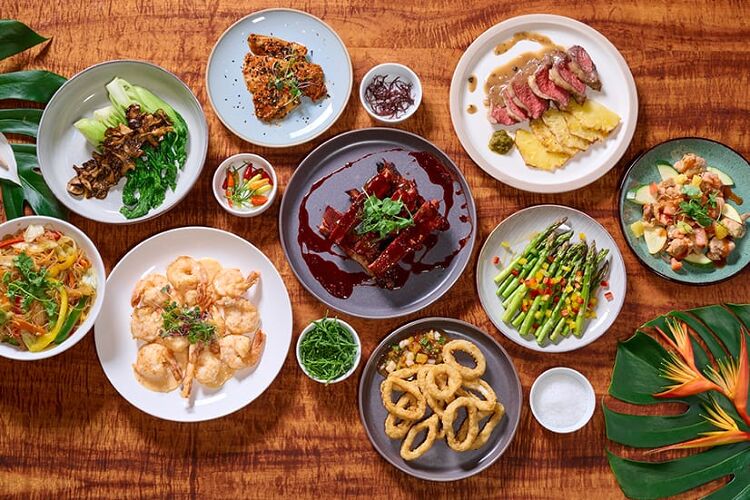 폴리네시아에서 영감을 받은 아시아 및 미국 요리의 풍미 가득한 메뉴를 즐겨보세요! 내부에 드넓게 아우르는 매력적인 벽화를 배경으로 하와이 전통 왕족의 분위기를 즐겨보세요.