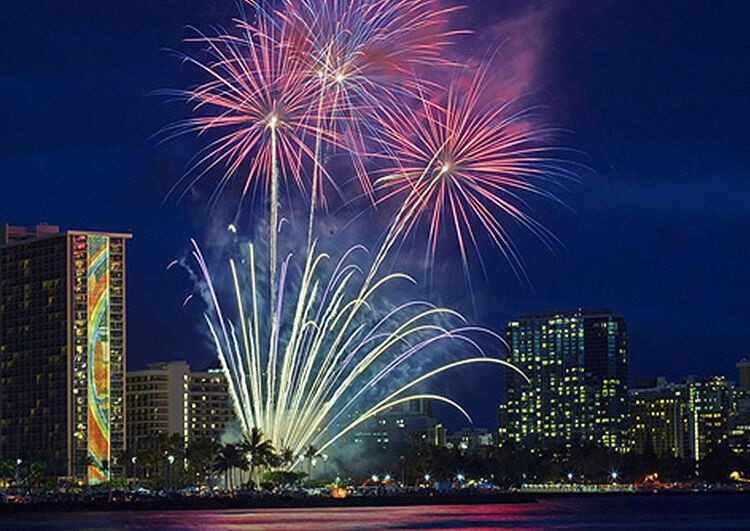 불꽃놀이는 힐튼 하와이안 빌리지에서 주최하며, 와이키키 해변을 따라 모여든 현지인들과 관광객들에게 멋진 볼거리를 제공합니다.