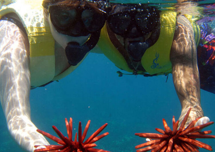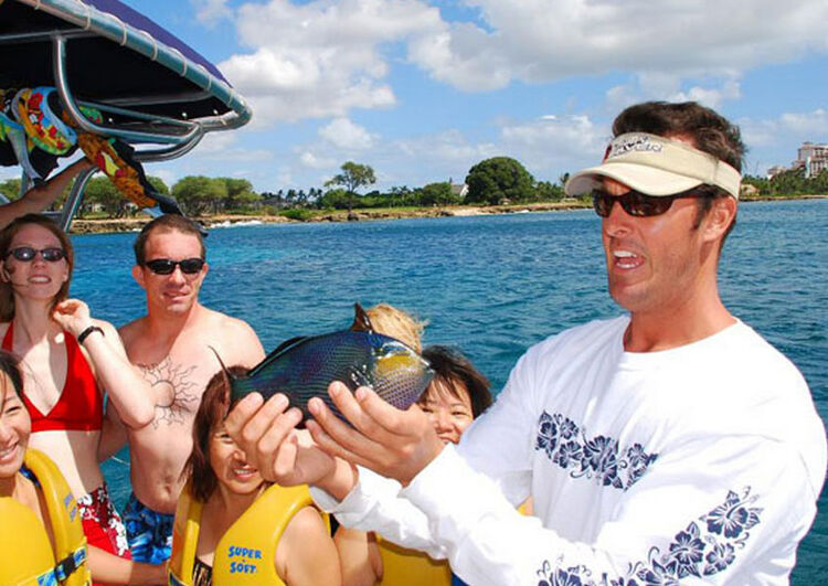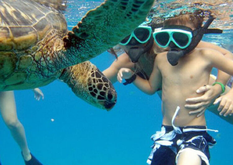 향해 중, 하와이 돌고래의 놀라는 파도 타기와 점프와 공중 회전을 감상 하시게 되며, 알록달록 열대어와 바다 생물을 나실 수 있는 천연 산호초 지역에서 스노클링을 즐기실 수 있습니다. 산호초 지역에서 스노클링이 끝나신 후 에는 초록 빛깔 바다 거북을 만나는 시간을 가지시게 됩니다.